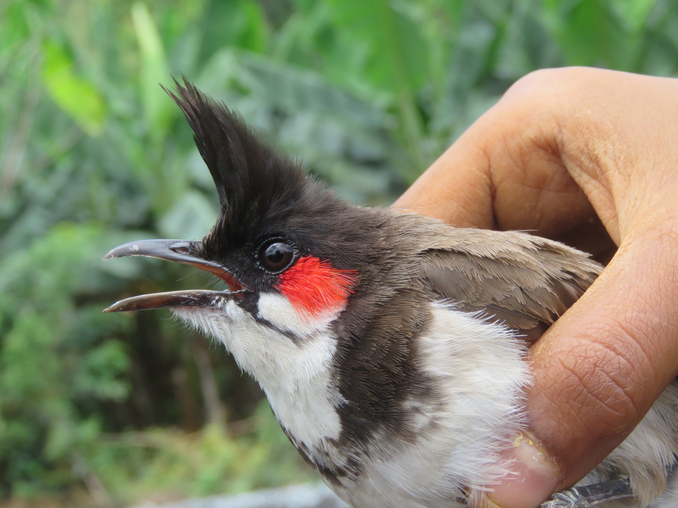 - Ptáci – 1. Acridotheres cristatellus (majna chocholatá), 2. Pycnonotus jocosus (bulbul červenouchý)
