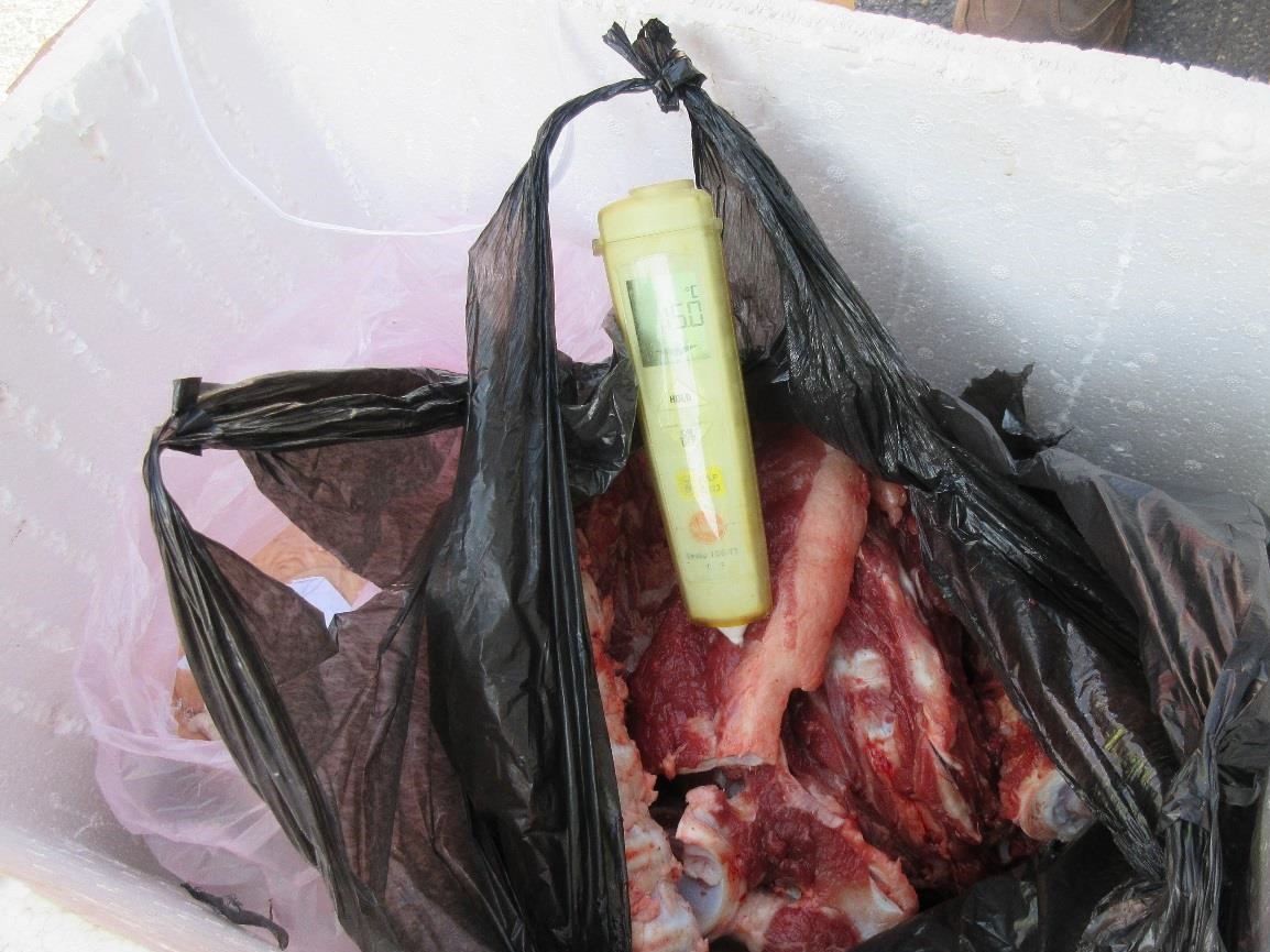 Vzhledem k tomu, že přepravce nedodržel teplotní a hygienické podmínky přepravy a nebylo možné garantovat zdravotní nezávadnost přepravovaných živočišných produktů, veterinární inspektor zásilku na místě obarvením znehodnotil a nařídili její likvidaci v asanačním podniku na náklady přepravce.