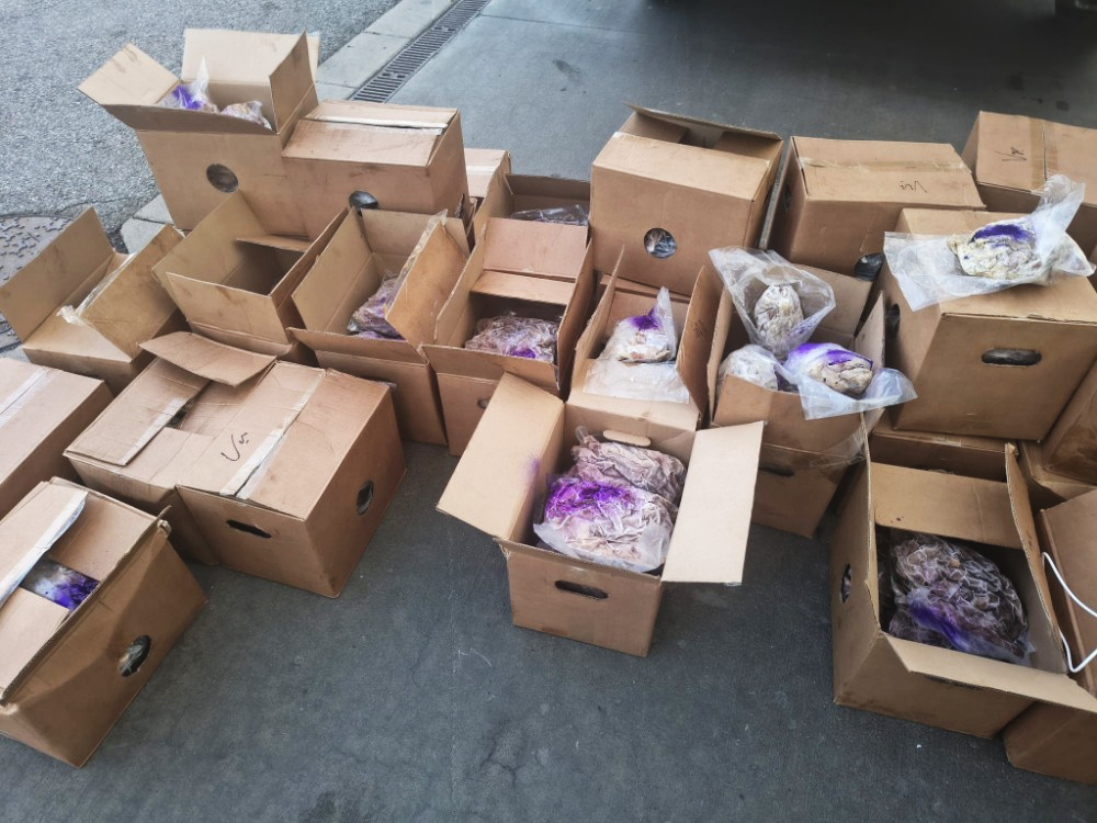 Kvůli porušení zákona o potravinách a evropské legislativy veterinární inspektoři znehodnotili potenciálně zdravotně závadné potraviny neznámého původu obarvením a nařídili jejich neškodné odstranění v asanačním podniku na náklady přepravce. Krajská veterinární správa pro Kraj Vysočina s přepravcem zahájí správní řízení o pokutě.
